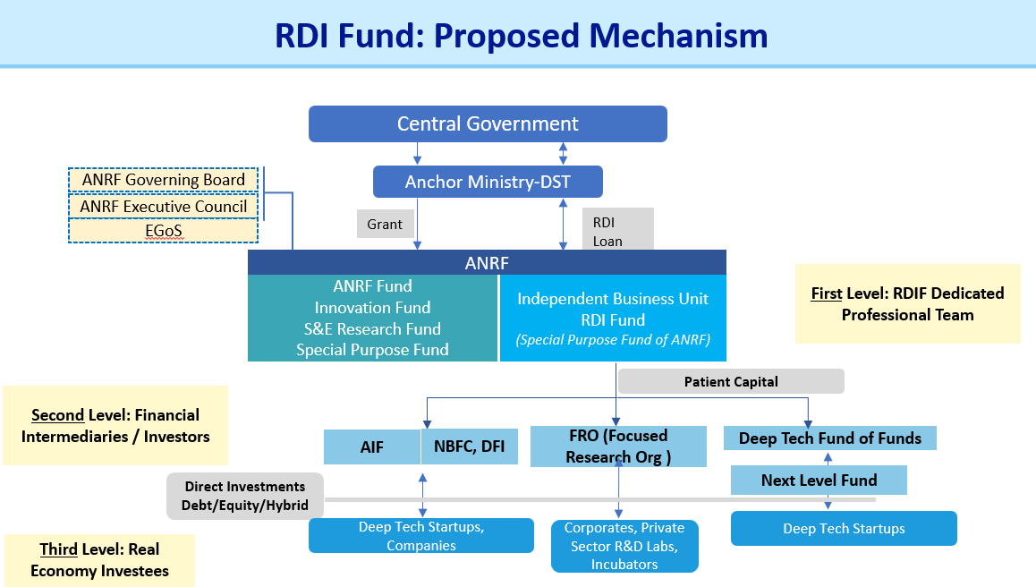 The Act also allows the creation of Special Purpose Funds (SPFs) for special purposes determined by GoI. One such ANRF SPF is the Research, Development, and Innovation (RDI) Fund of Rs. 1 lakh Crores.