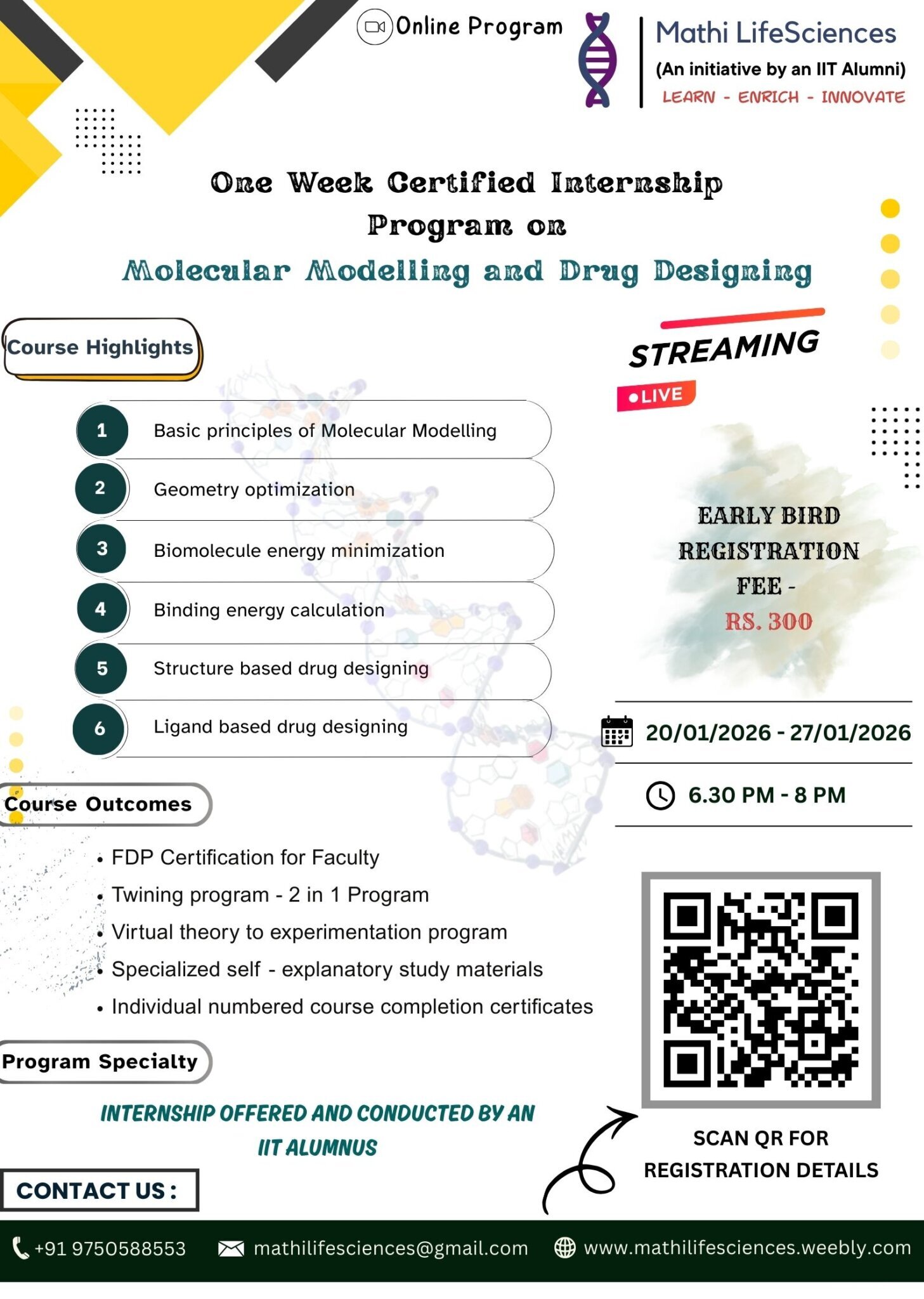 One Week Certified Intership Program on Molecular Modelling and Drug Designing