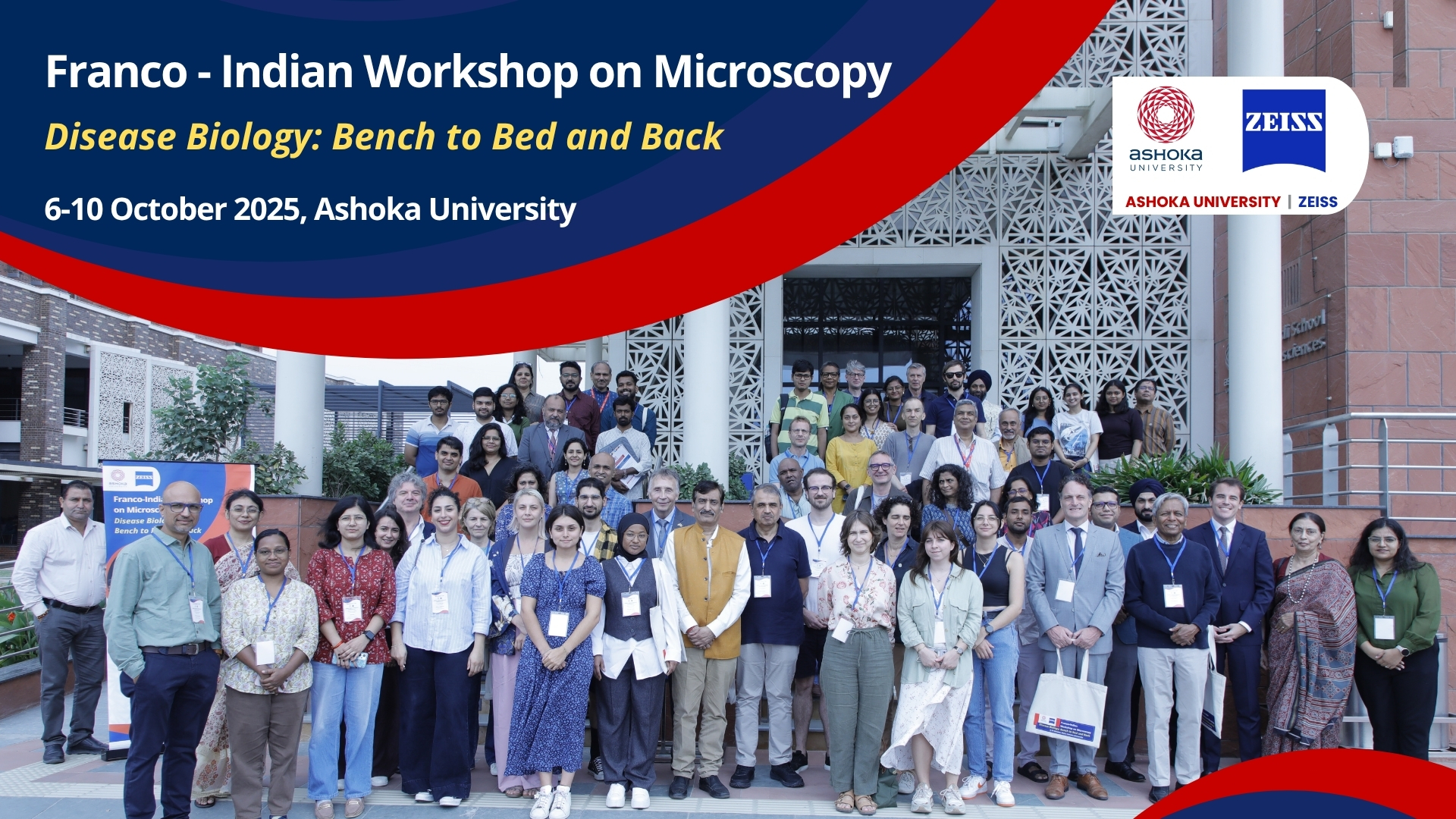 The Franco-Indian Workshop on Microscopy, held from 6–10 October 2025 at Ashoka University, brought together researchers from India and France to explore cutting-edge imaging in disease biology. Over five days, the event fostered collaborations, hands-on learning, and vibrant scientific dialogue across borders.