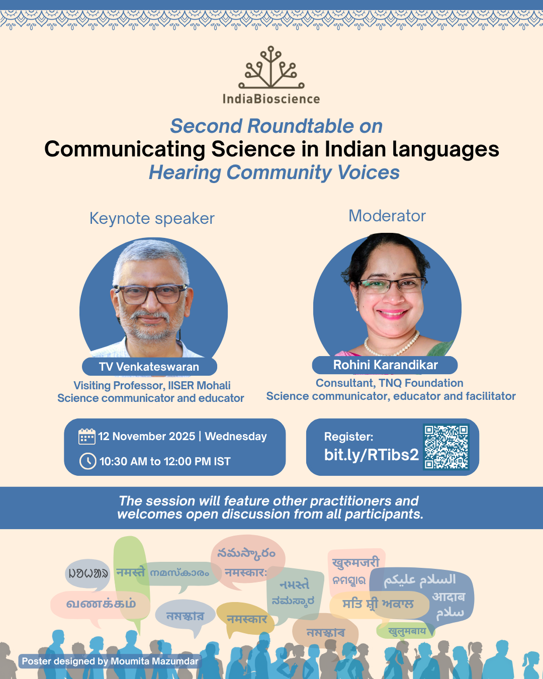 Join us for the second roundtable on Communicating science in Indian languages on 12 November, 10:30 AM – 12:00 PM IST. The keynote of this session will be delivered by TV Venkateswaran, Visiting Professor at IISER Mohali, and moderated by Science Communicator and Educator Rohini Karandikar. The session invites open dialogue on the challenges, strategies, and way forward for science communication in Indian languages — register here.