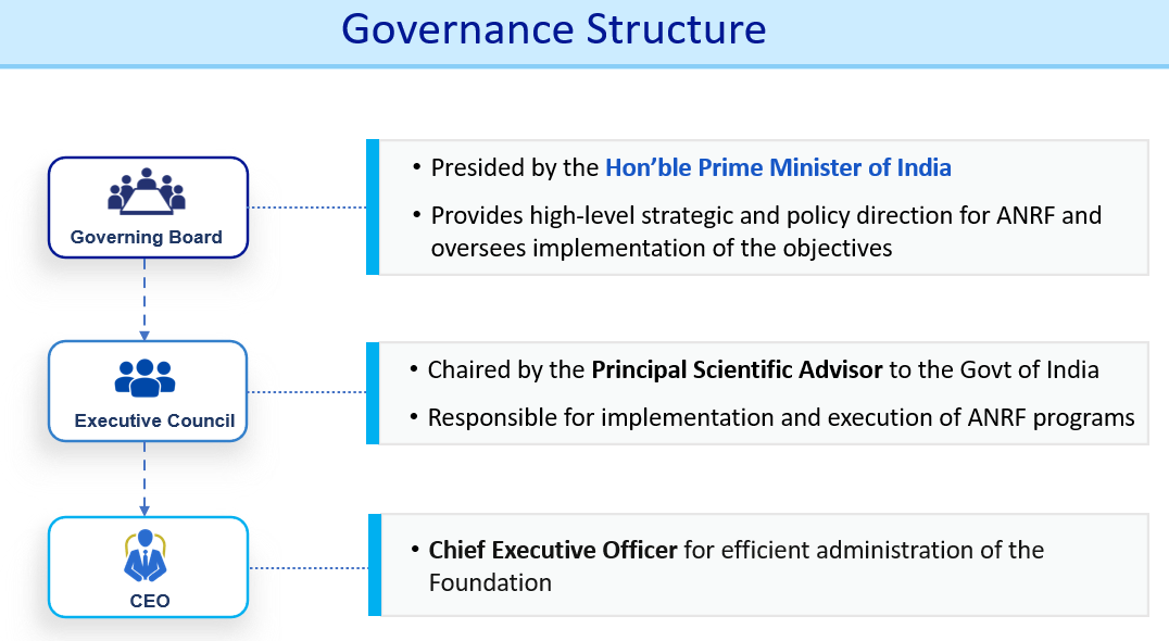 The governance structure of ANRF is a Governing Board (GB) Presided by the Hon’ble Prime Minister of India, an Executive Council (EC) chaired by the Principal Scientific Advisor (PSA) to the Govt of India, and the CEO who reports to the Executive Council. The Vice Presidents of the Governing Board are the Hon’ble Minister of Science and Technology and the Hon’ble Minister of Education. I am privileged to serve as the first full time CEO of ANRF, succeeding Prof. Abhay Karandikar who served as Interim CEO. DST is the administrative ministry for ANRF; but as a statutory body and apex organisation, ANRF serves stakeholders in all parts of the government in its focus areas. Secretaries/DGs of scientific departments, and selected ministries are members of the GB and EC.