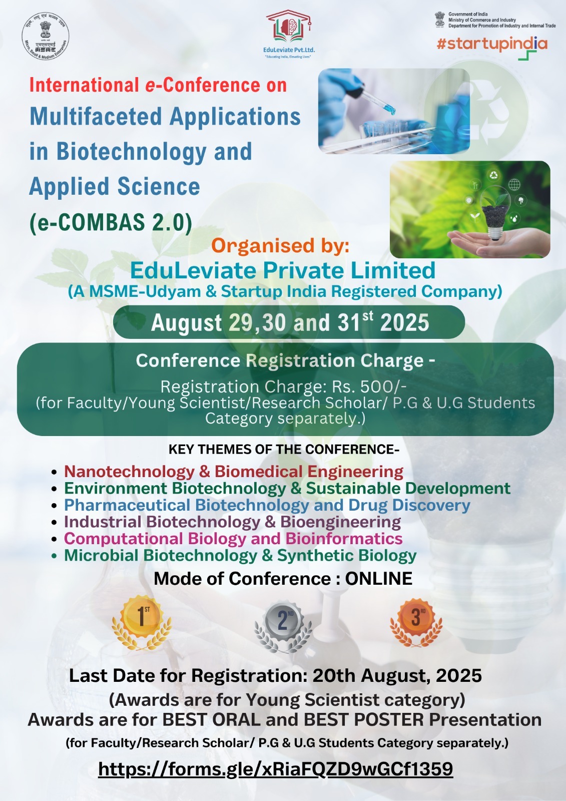 The conference aims to bring together researchers, scientists, innovators, and academicians from across the globe to share their latest research findings and explore emerging trends in biotechnology and applied sciences. We also have a lineup of esteemed speakers, oral and poster presentation sessions, and awards for the best contributions.