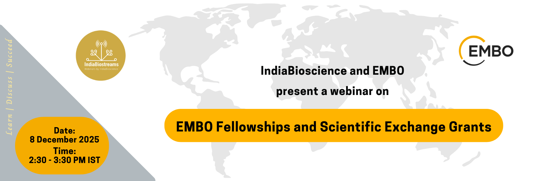 IndiaBioscience is partnering with the European Molecular Biology Organisation (EMBO) to present informational webinars about EMBO’s Fellowships and other funding opportunities. The next online webinar in the series, EMBO Webinar on Fellowship and Funding Opportunities, will take place on 8 December 2025 from 2:30 PM to 3:30 PM IST.