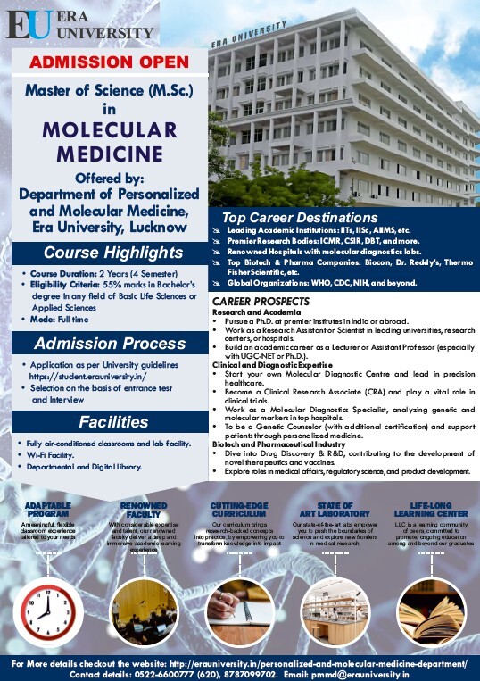 Offered by: Department of Personalized and Molecular Medicine, Era University, Lucknow.