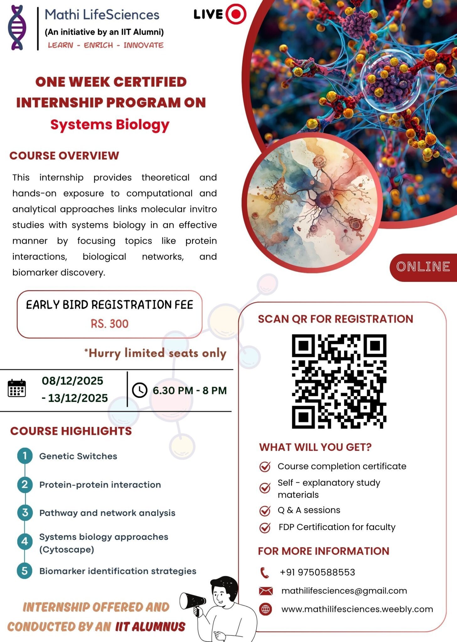 One Week Certified Internship Program on Systems Biology is Organised by Mathi LifeSciences, (An Initiative by an IIT Alumni), Coimbatore- 641111, Tamil Nadu, India